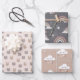 Un ensemble de trois draps d'enveloppement cadeau coordonnés en tans neutres et gris.
