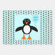 Cet ensemble impressionnant d'enveloppement cadeau présente un joli dessin d'un pingouin bleu aux yeux bleus, un petit bec orange et un ventre blanc. Le pingouin tient un ballon bleu poudreuse. Il y a du texte bleu pâle à l'intérieur du ballon qui dit, "Petit garçon".