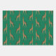 Feuille De Papier Cadeau Belle Giraffe verte et Tan