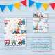 Cute trains chug along this wrapping paper which can be customized with name and age. The designs feature red, blue, and yellow trains in a cartoony style. Matches perfectly with our Cute Train Birthday Collection. Please make sure to double check your personalization!