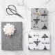 Arbre de Noël Noir Faux Parties scintillant Argent Feuilles de papier d'enveloppement de vacances. Un motif de Noël noir moderne et simple sur un arrière - plan gris et blanc avec un texte de Noël Joyeux noir. La feuille 1 est une parties scintillant fausse argent.
