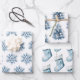 Feuille De Papier Cadeau Bleu Blanc hiver Snowflakes Arbres Bas