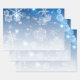 Belle feuille d'emballage à thème hivernal avec des flocons de neige en cristal et des étincelles sur un arrière - plan bleu brillant.