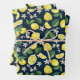 Feuille De Papier Cadeau Bleu Nuit Citron Floral