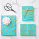 Feuille De Papier Cadeau Bleu Turquoise Élégant Gold Striped