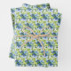 These fun and whimsical wrapping paper sheets features watercolor baby blue and navy blue flowers with foliage.