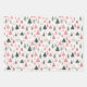 Boho Pink et Green Noël arbres sur ces trois feuilles de papier d'emballage saisonnier de vacances. Chaque feuille est un motif de coordination, trois conceptions différentes qui correspondent.