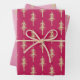 Feuille De Papier Cadeau Bois d'or Forêt de pins rose framboise rouge