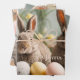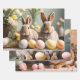 Envelopper des feuilles de papier avec des lapins mignons avec des fleurs et des oeufs. Beau pour envelopper vos cadeaux de la saison de Pâques d'une manière festive et personnelle.