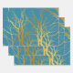 Feuille De Papier Cadeau Branches Gold Tree Motif Arrière - plan bleu