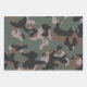 Un trio de feuilles de papier enveloppant de camouflage en vert, gris et bleu. Veuillez voir toutes les photos.