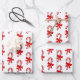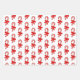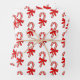 Custom wrapping paper with candy cane inspired shapes and ribbons in red, green and white.