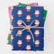 Caricature de Noël du Père Noël enveloppant des feuilles de papier. Enveloppement cadeau imprimé Fun Holiday pour les amis et la famille. Design coloré pour petits et grands. Couleurs arrière - plans personnalisables, vertes, bleues et roses. Finition mate ou brillante. Joyeux Noël!