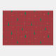 Feuille De Papier Cadeau Carrés verts avec arbres de Noël en rouge