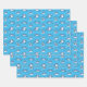 Caricature, Grand requin blanc dans les tons bleu et blanc nage sous la mer sur un motif de vagues flottantes. Les amateurs de requins apprécieront ce design amusant sur cette série de trois feuilles de papier cadeau plat. Ajustez la taille du motif à votre préférence sur chaque feuille. Idéal pour toute occasion de cadeaux !