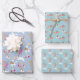 Présentation de 3 papiers d'emballage d'occasion spéciale magnifiquement illustrés par Alison Woodside. Doté de la charismatique Fox Terrier flottant à travers le ciel d'été tenu par des ballons colorés.