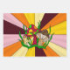Style vintage champignons couleurs rétro pop art emballage cadeau pour les anniversaires.