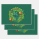 Feuille De Papier Cadeau Chasseur de monogramme de couronne de Noël Vert