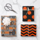 Feuille De Papier Cadeau Chat et sorcière d'Halloween | Points noirs et ora