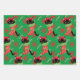 Feuille De Papier Cadeau Chat grumpy Happy Holiday Rouge et Vert 3 Envelopp
