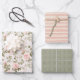 Un papier cadeau chic et doux avec des fleurs roses et vert sauge et des rayures, parfait pour les baby showers, les mariages, les anniversaires et plus encore.