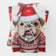 Un adorable Bulldog est prêt pour la saison des Fêtes avec son chapeau de Père Noël et son pull de vacances. Ce mignon chien de Noël est jumelé à un plaid de vacances rouge et blanc sur cet ensemble d'enveloppement cadeau pour l'amoureux des chiens.