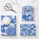 Feuille De Papier Cadeau Chinoiserie Florale Peony bleu et blanc