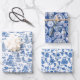 Papier d'emballage bleu Chinoiserie Toile en 3 styles : porcelaine bleue et blanche, saule bleu et fleurs chinoiserie.