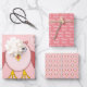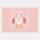 Ce magnifique ensemble d'enveloppement cadeau présente un joli dessin d'une chouette rose aux yeux somnolents, un large bec ouvert et de mignonnes plumes moelleuses. Le hibou tient un ballon rose bubblegum. Il y a du texte assez rose à l'intérieur du ballon qui dit, "Petite Fille".