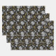 Elegant black and gold wrapping paper sheets featuring Christmas sweaters, hats, socks, gloves and snowflakes.
