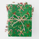 A Colorful Christmas Wrapping Sheet Set Of Candy Canes, Stuffed Stockings And Wooden Rocking Horses