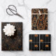 Collection éffrayante de trois feuilles papier d'emballage motif déplaisant avec araignée en motif brocade, citrouille effrayant et toile d'araignée.