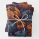 Feuille De Papier Cadeau Citrouilles violet, bleu et orange