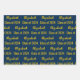Les feuilles de papier d'emballage sont bleues. Tous ont un motif texte pour le nom et la classe du diplômé de 2024. Le nom (Montré : Elizabeth) apparaît dans un élégant script de maïs. L'autre texte est aussi le maïs. Tout le texte peut être modifié.