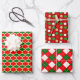 Un ensemble de beaux et classiques feuilles de papier d'emballage vert rouge et faux or avec un motif ogee, plaid Jacquard et pois, parfait pour vos cadeaux de vacances en donnant des besoins!