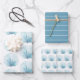 Ces beaux draps d'enveloppement cadeau présentent des coquillages d'aqua côtier d'aquarelle sur un solide arrière - plan blanc sur deux des draps avec une solide bande mince d'aqua bleu et blanc sur la troisième.