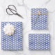 Feuille De Papier Cadeau Cœurs blancs sur lin bleu foncé