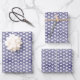 Feuille De Papier Cadeau Cœurs blancs sur lin bleu marine