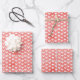 Feuille De Papier Cadeau Cœurs blancs sur lin rouge vif