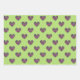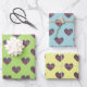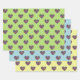 De jolis coeurs colorés sur des arrière - plans pastel ornent nos 3 feuilles de papier d'emballage. Par Monkey Business Graphic Design. 2021