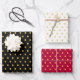 Feuille De Papier Cadeau Confetti Pois d'or sur Noir, Rouge et Blanc