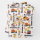 Document d'emballage détaillé du travailleur de la construction comportant un travailleur multiculturel de la construction dirigeant une fille conduisant un camion à benne, un mélangeur de ciment et une pelle. Cette enveloppe cadeau de nom personnalisé est parfaite pour toutes les occasions. Papier d'enveloppement d'occasion pour enfants.