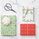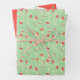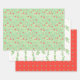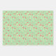 Feuille De Papier Cadeau Coral, Vert et Fleurs Blanches