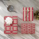 Cet ensemble de papier d'emballage amusant présente trois motifs chic de ferme différents de rouge, or et crème. On a l'air d'un motif à courtepointe aux formes étoilées à quatre branches, d'un motif aux mandalas florales répétées, puis d'un troisième modèle de bandes mixtes. Les bandes sont imprimées régulièrement sur papier mais elles ressemblent presque à du tissu, avec un mélange de en vichy, pointillés suisses, des chaînes d'or et des fleurs. Cet ensemble est coordonné avec d'autres motifs, cartes et étiquettes de couleur rouge, brun et crème de la ferme de campagne, et il est très bien doté d'une variété d'accents, tels que des arcs, des rubans, des éléments naturels comme les pinecones ou les feuilles, et des cordes. #ferme #rayures #rayées #pays #rouge #crème