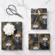 Feuille De Papier Cadeau Crânes et fleurs orange sur Charcol