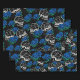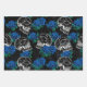 Feuille De Papier Cadeau Crânes et Roses bleus | Cool Funky Dark Grunge