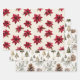Feuille De Papier Cadeau Crème Rouge Poinsettia Floral Noël