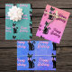 This set of wrapping paper sheets are in various colours of teal, purples, and pinks with cute black cats with green eyes wearing light pink bows. Customise the Happy Birthday text with the template.