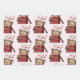 Feuille De Papier Cadeau Cute Cartoon Kitten in a Box with Hearts Pattern