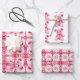 Three pages of cute pink and white crocheted teddy bear girl's baby shower gift wrap.